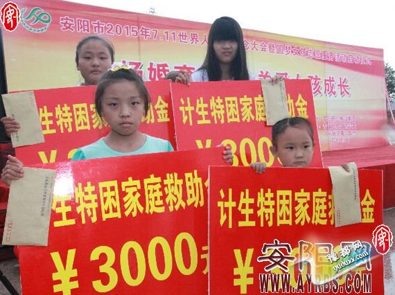 7月11日是第二十六个世界人口日。当天,在安阳县永和镇,一场由市、县两级人口计生部门联合主办,以“弘扬婚育新风、关爱女孩成长”为主题的志愿服务活动正在进行。活动为困难计生家庭发放了慰问品和救助金,志愿者上门走访慰问了困难计生家庭,向群众发放包括宣传品、避孕药具在内的计生礼包,并通过摆放宣传展板、设立咨询台等方式向群众讲解优生优育和政策法规等方面的知识。(记者 郭 敏 摄)