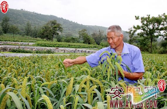 ?近年,国家投资的水土保持项目将山水田林路综合治理、水保工程治理等与经济林、天然林、水保林相结合,取得了显著的生态效益、经济效益和社会效益,让地处山区的安阳县善应镇群众受益匪浅。8月31日,该镇谢家庄村村民刘米贵在修砌好的石坎梯田里管理谷子。(贾海平?张红卫 摄)