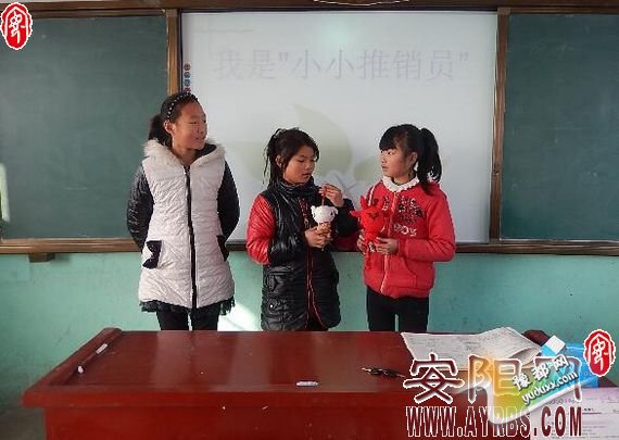 ??? 安阳县磊口乡清池小学在学习文化课的同时,非常注重锻炼学生的口头表达能力和实践能力。12月10日,在该校五年级举办的“我是小小推销员”口语实践课上,同学们认真准备,积极参加,在轻松的氛围中锻炼语言表达能力,展现自我。(记者 姜蕴真 摄)