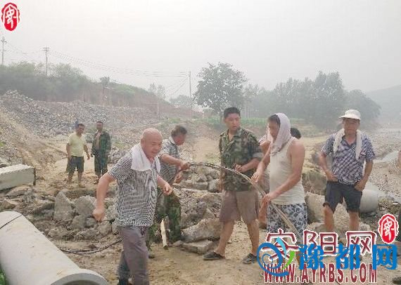 ????当洪水冲过中城村里的河道时,常新芳拉着两个孩子,带着父亲正准备蹚水从河道南岸往北岸走。“不要过来,河里水深,危险。”该村党支部书记常永福的一声呼喊止住了常新芳的步伐。冒着大雨,蹚着齐腰深的水,常永福到家拿上绳子,又返回到河岸,隔着7米宽的河道,使出全身力气,扔了多次才把绳子扔向河南岸机井房的铁窗上。常新芳一家四口站在石头上,抓着绳子以免被冲走,等了半个多小时,水位下降后,才过了河。