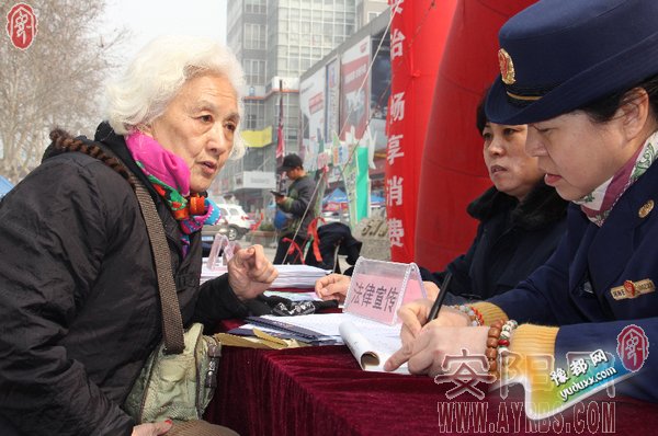 安阳网讯(记者 王浩文/图) 3月15日是国际消费者权益日,9时许,在红旗路与人民大道交叉口附近,市工商局北关分局的工作人员开展以“携手共治畅享消费”为主题的宣传活动,活动现场,不少市民就关乎自身权益的问题进行现场投诉。