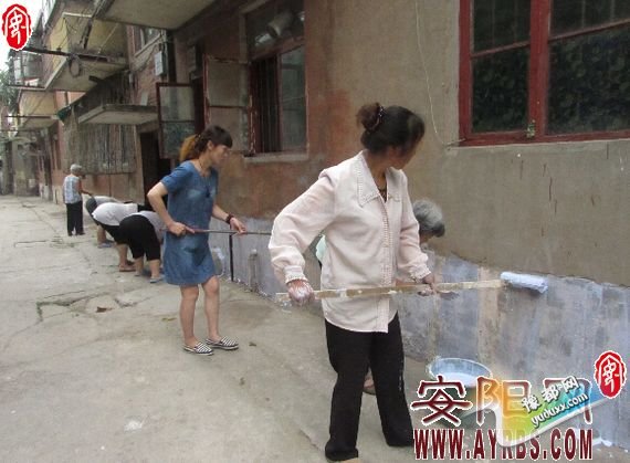 为打造整洁家园,7月14日下午,北关区民航路社区组织人员对辖区楼院的绿化带、墙面、破损煤棚进行了全面改造,为居民营造整洁优美的居住环境。(吴 昊 摄)