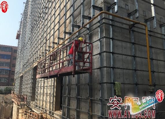 □记者 王 涛 文/图?7月28日,记者来到位于彰德路与健康路交叉口的安阳U乐广场项目建设现场,虽然天气非常闷热,但建设工地上依然是热火朝天。站在工地抬头看,100多米高的主楼显得高不可攀,半空中挥汗如雨的工人正在进行外墙装修。负责开发U乐广场项目的河南鸿轩房地产公司副总经理杨建国告诉记者,U乐广场项目是安阳市的重点建设项目,是一家集商业、购物、餐饮、娱乐、住宅、写字楼、公寓、电子商务于一体的大型城市综合体。主体结构去年已经完工,现在正在抓紧进行二次结构装修、外墙装修和空调、电梯等设备的安装,今年年底可以全部投入使用。杨建国一边介绍一边递过来一顶安全帽说:“咱们上去看看吧,高处风景独好。”我们登上施工专用电梯上到22楼,举目四望,安阳城区景色尽收眼底。杨建国说:“可惜今天有点雾,要是晴天,站在我们楼上向西可看到太行山,向东可看到京港澳高速公路。” 他向记者介绍,目前,已有包括丹尼斯大卖场、大地数字影院、美国流行餐饮品牌DQ、韩国第一大快餐“比比客”等在内的150家企业和品牌正式签约U乐广场。他抬起胳膊画了个圈说:“到时候,U乐广场将和沃尔玛、银座商城形成一个大的商圈,成为我市商业的一个新亮点。”