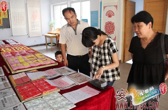 ?除此以外,在艺术展中间的桌子上,还摆放了辖区居民付俊荣老人为喜迎抗战胜利70周年特意手工编织的花纸夹,以及社区准备的有关抗战方面的文献图片和资料。
