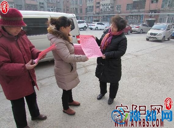 ??? 春节临近,为保障居民节日期间的安全,北关区盘庚东社区的工作人员向居民发放了《致辖区居民春节安全的一封信》,提醒居民防盗、防火、安全出行等注意事项,受到居民欢迎。(记者 侯沛丽 摄)