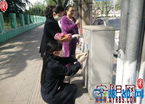 《苹果园社区员工带领志愿者开展小广告清理活动》由河南新闻网-豫都网提供,转载请注明出处:http://anyang.yuduxx.com/beiguan/375323.html,谢谢合作!