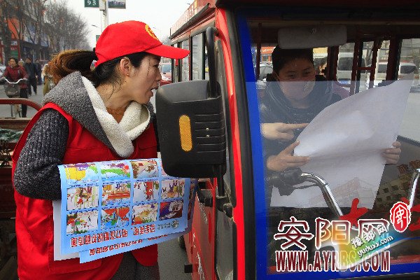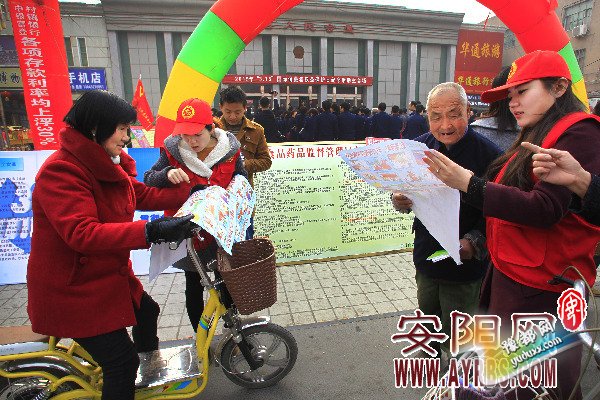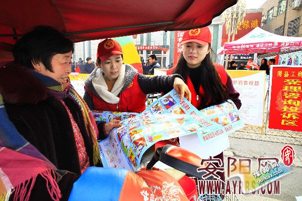 3月15日, 消费者权益日当天,在河南滑县城区解放路繁华路段、人民会堂、居民小区等处,电力小红帽青年志愿者为路过的行人讲解安全用电常识。