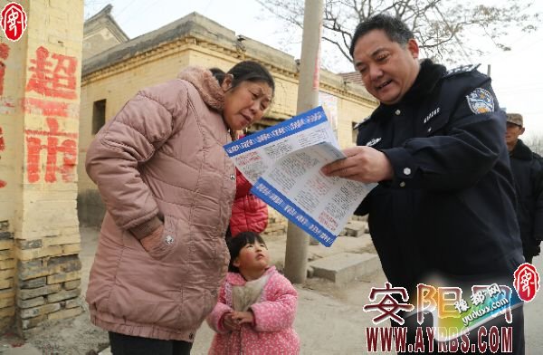 1月6日,汤阴县公安局组织“一村一警”包村民警到伏道镇挨家挨户开展涉爆隐患大排查,并向广大群众面对面宣传防火、防盗、防抢、防骗等常识,深受群众好评。(本报记者 尚丽娟 摄)