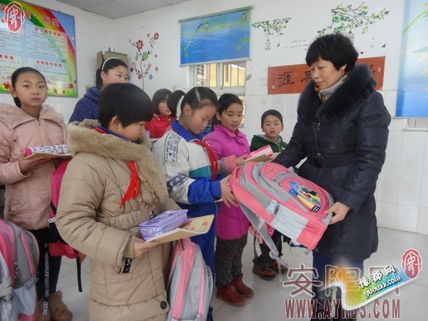 为帮助学校的留守儿童和家庭贫困的学生过一个欢乐、祥和的春节,该校在个人申请、班级推荐、学校审核的基础上,确定了10名品学兼优、家庭贫困的救助对象,并于7日上午举行了“迎新春送温暖,关爱贫困学生”活动。图为活动现场。(记者 杨凌高 摄)