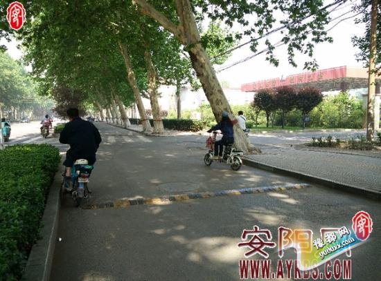 昨日上午,记者来到现场,看到安装减速带的非机动车道位于安钢大道靠近安阳钢铁集团公司大门西侧,旁边就是安阳钢铁集团燃料总站。因为路面设有减速带,市民骑车途经此地时都变得小心翼翼,有的则干脆从机动车道或人行道上绕行。