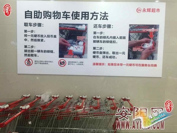 《超市手推车装投币锁 消费者慢慢习惯》由河南新闻网-豫都网提供,转载请注明出处:http://anyang.yuduxx.com/jinri/229078.html,谢谢合作!