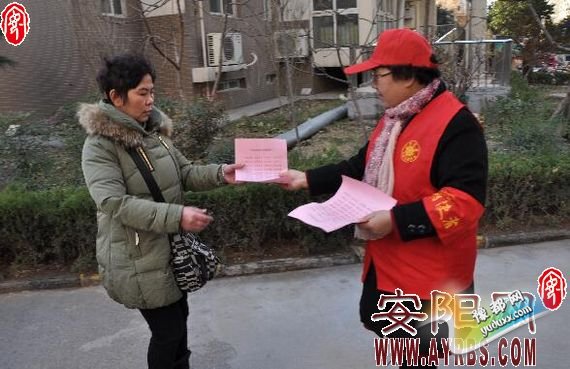 ??? 12月4日,安阳经济开发集团有限公司党员志愿者到文峰区中华路街道康馨社区,向居民发放有关志愿者精神的宣传单,并在社区开展义务劳动。(记者 张??璐 摄)