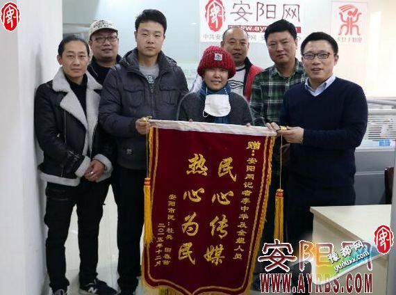 □记者 朱 琨 侯 杰 刘安娜 郭诗尧 文/图“是大家的帮助给了我第二次生命,我们实在没什么能感谢的,送来一面锦旗只想表达一点心意。”12月14日下午,备受安阳社会各界关注的白血病女孩田春苗,乘坐着其爱人杜兵驾驶的电动车,大老远从市区西部来到位于东区的安阳日报报业集团,只为送上一面锦旗,以表达对社会各界爱心人士的感激之情。