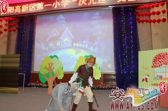 ??? 2015年12月31日下午,安阳高新区第一小学多功能厅张灯结彩,喜气洋洋,该校庆元旦文艺会演隆重举行。全体师生和部分家长代表欢聚一堂,载歌载舞,共同迎接2016年元旦的到来。(记者 杨凌高 摄)