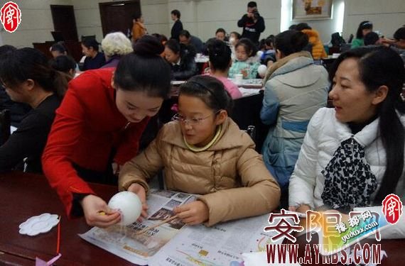 ??? 1月1日,安阳博物馆举办“喜迎佳节话元旦”亲子互动活动。来自我市东南营小学、曙光小学、东门小学、建安小学、文博源小学的20多个学生家庭参加了活动。通过讲解元旦的由来、竞猜谜语、成语猜想、巧手绘彩蛋等环节,孩子们感受到了浓浓的节日气氛,体验了中华文化的博大精深。图为工作人员指导孩子绘彩蛋。(记者 侯沛丽 摄)