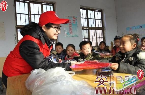 ??? 2015年12月30日上午,国网安阳县供电公司5名青年志愿者到地处深山的安阳县都里镇北马辛庄小学,给21名孩子和2名老师送上棉帽和手套,并给孩子们讲科普知识,和他们一起捏泥人、做游戏,以此方式温暖山区孩子幼小的心灵,迎接2016年元旦佳节到来。 (任万清 摄)