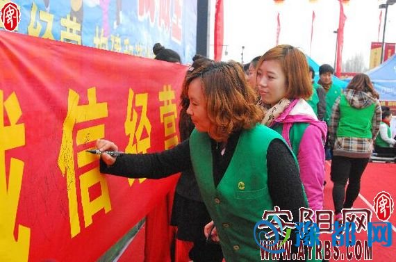 “倡导文明诚信经营”签名仪式现场。(记者 苏迅 摄)