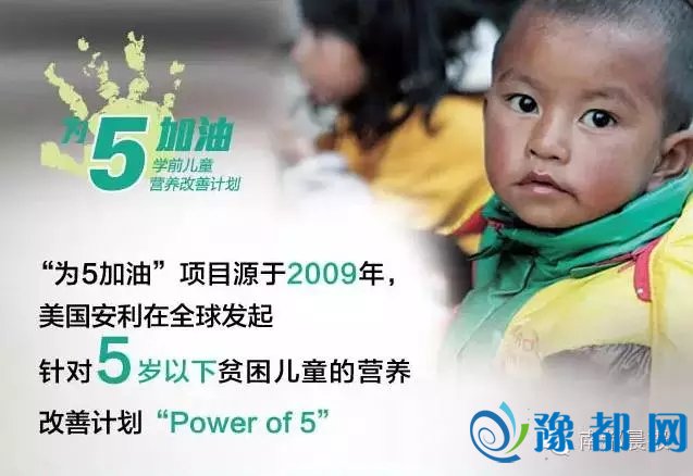 ????2016年10月16日是第36个世界粮食日,美国安利公司宣布,在未来三年内,安利致力于改善3-5岁儿童营养状况的“为5加油”项目将在全球投入更多资金,加强与多国政府及公益机构的合作,通过扩大分发儿童营养包或咀嚼片的地点和数量,希望到2019年底,也就是安利公司成立60周年之际,为全球超过50万的营养不良儿童提供精准帮扶,改善他们因营养不良导致的健康发育问题。