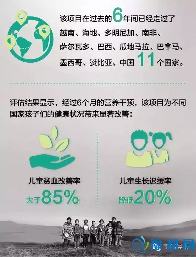????安利在全球长期致力于关爱儿童成长,从2009年开始,美国安利公司运用自身在营养领域的专业优势,在全球发起了针对5岁以下贫困儿童的营养改善计划“为5加油”,通过免费分发营养包或咀嚼片,对营养不良的儿童进行营养干预。截至2016年10月,该项目已在中国、赞比亚、墨西哥等15个国家开展,为超过3万名儿童提供了500多万份营养包及咀嚼片。评估结果显示,经过6个月的营养干预,就可以为孩子们的健康状况带来显著改善:儿童贫血改善率大于85%,儿童生长迟缓率降低20%,儿童行为能力显著提高,变得更为活跃,乐于与人交谈,学习兴趣增强。