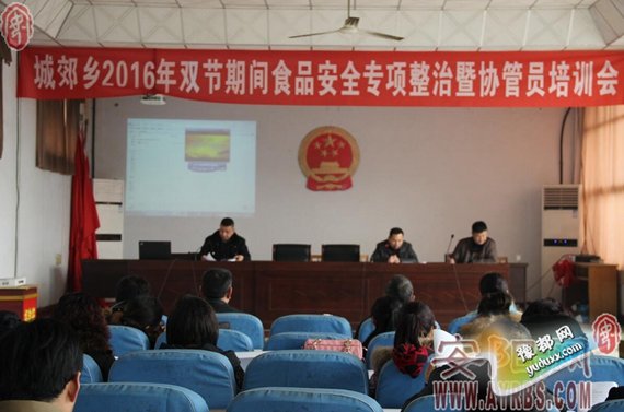 ??? 为切实提高食品安全监管能力和工作水平,保障群众双节期间食品安全,城郊乡于2016年1月7日召开双节期间食品安全专项整治暨协管员培训会,确保各项监管措施落到实处。会议邀请市食品药品监督管理局餐饮科科长为主讲人,各村食品安全协管员30余人参加培训。