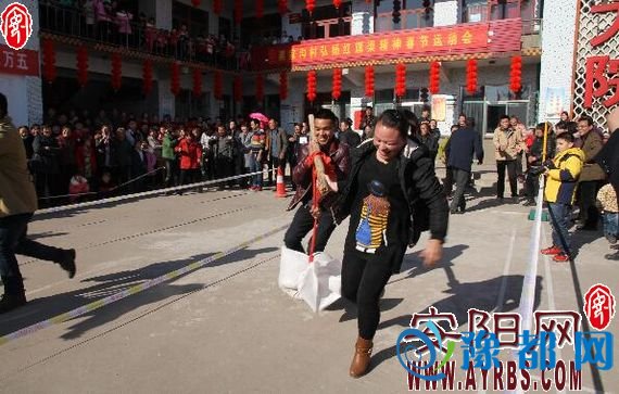 ????图为弘扬红旗渠精神春节运动会上进行的抬重物比赛。(李长青 摄)