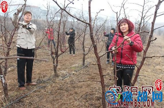 ????林州市横水镇积极支持成功人士返乡创业,在外创业的郭文杰和王会明在该镇南新庄村通过土地流转分别建设林州市福佑农场和绿然种植有限公司,发展坡地经济和生态观光农业,解决了200多名农民工的就业问题。图为12月26日,农民工在福佑农场修剪冬枣树。(记者?刘剑昆?摄)
