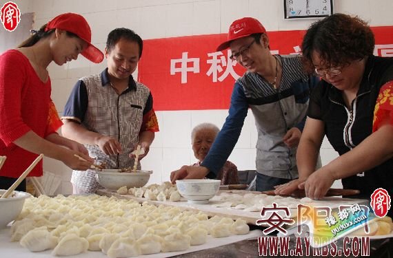 ?9月25日,在内黄县光荣院,志愿者和老人一起包饺子。当天,内黄县民政局的党员志愿者带着月饼、水果到县光荣院开展敬老志愿服务活动,和老人一起包饺子、吃月饼,喜迎中秋佳节的到来。(刘肖坤??摄)