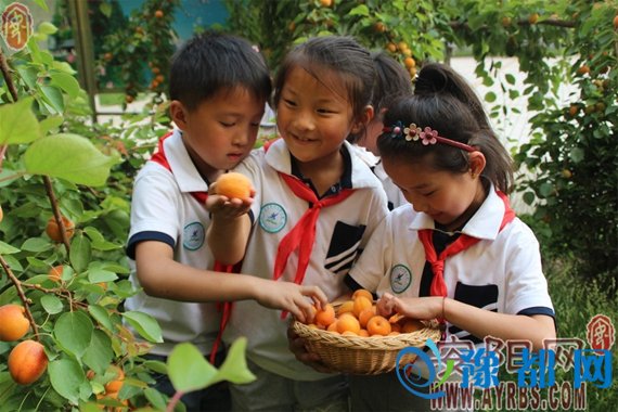 ??? 5月24日,河南省内黄县第四实验小学的孩子们在校园实验田里采摘鲜杏。为了迎接“六一”儿童节的到来,内黄县第四实验小学举行了丰富多彩的采摘节活动。据了解,该实验田是学生在老师的指导下进行耕地、播种、管理,小小实验田不仅丰富了孩子们的课余生活、提高了孩子们的动手能力,还从小养成爱劳动的好习惯。