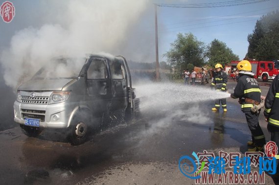 □记者 任贵伟?文/图??? 9月1日14时42分,内黄县公安消防大队繁阳大道中队接到报警:一辆装满电池的小货车在省道S302三流河段发生自燃,该中队立即派出2辆消防车、8名消防官兵赶往现场。