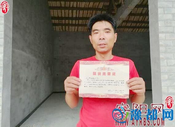 ????去年,葛书军一家人还住着两间破瓦房,连个院墙都没有,今年咋有钱盖新房了?看出记者的疑惑,葛书军变戏法似的从屋里拿出一张脱贫光荣证给我们看,“别用老眼光看俺家,自从政府帮俺家找到稳定脱贫的路子,这日子真是越过越有劲儿。”看着这张印着大红字的脱贫光荣证,葛书军笑容满面。