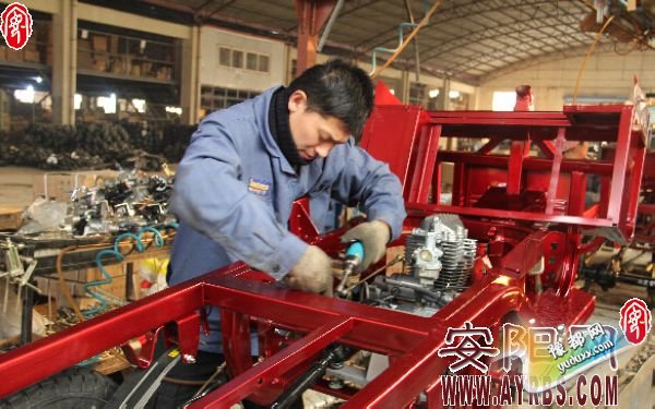 汤阴县韩庄镇充分发挥区位优势、资源优势,大力扶持主导产业,形成了以食品医药、冶金建材、装备制造、新型材料、纺织服装、三产物流等六大主导产业为支柱的工业发展新格局。图为2月3日,双枪摩托车有限责任公司工人正在安装电动三轮车。(记者 刘 博 摄)