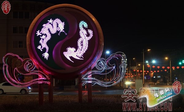 2015年2月26日傍晚,汤阴县人民路东段华灯初上,多彩的灯光把春天的夜晚装扮的格外漂亮。(王计亮/摄)
