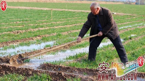 为再夺小麦丰产丰收,汤阴县城关镇积极组织农民群众掀起抗旱浇地热潮。图为3月4日,该镇李孔村村民正在为小麦浇灌返青水。(玉温郭天立摄)