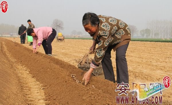 4月6日,汤阴县韩庄镇工官屯村农民正在田间种植山药。近年,该镇以发展高效生态农业为目标,依托当地农业实际情况,调整资源结构,积极发展山药、食用菌、果蔬等特色产业,有效实现了农业增产、农民增收。(记者 刘 博 摄)