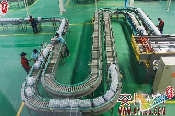 ?6月15日,在汤阴县产业集聚区今麦郎饮品(汤阴)有限公司生产车间,工人在生产线上紧张忙碌。今麦郎饮品项目由全国知名企业今麦郎集团投资建设,总投资4.5亿元,占地158亩,项目采用法国全自动生产线,应用水处理超滤先进工艺,共建设4条生产线。实现年营业收入6亿元,利税4800万元,提供就业岗位200余个。(王鹏飞 摄)