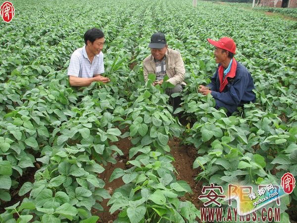 ?6月29日,汤阴县宜沟镇农技干部在田间为农民讲解黄豆病虫害防治知识。6月以来,针对部分农田出现虫情,该镇组织20多名农业专家、农技人员深入田间地头为农户答疑解惑,受到农民欢迎。??(记者?邓娴?摄)
