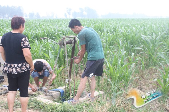 汤阴县古贤镇通过现场指导等形式引导群众迅速掀起抗旱保苗热潮。截至目前,该镇已出动抗旱机械1000多台,投入资金10万元,浇灌农作物1.5万亩。图为7月15日,该镇北韩庄村村民正在安装水泵。(顾光保 摄)