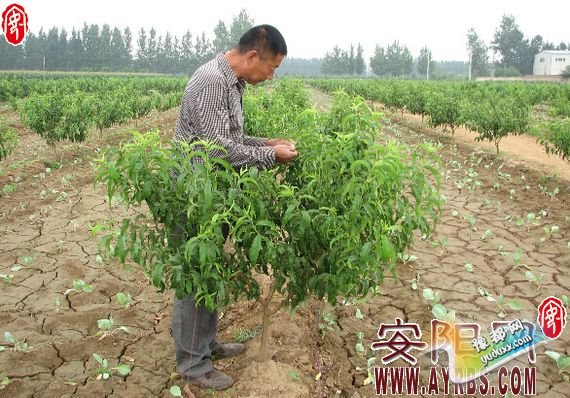 ?汤阴县宜沟镇以转变农业发展方式为主线,以增加农民收入为中心,大力引进科学技术,及时调整种植结构,促进农业产业结构化升级,推动果蔬套种规模化发展,带动更多农户走上果蔬套种发展致富之路。图为9月7日,该镇农民在管理新种植的桃树。(本报记者??邓??娴??摄)