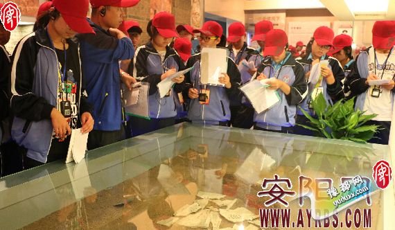 ?9月20日,汤阴县白营镇组织该镇第一中学部分优秀学生开展了“弘扬传统文化、励志奋发学习”活动。当天,该校75名学生代表参观了中国文字博物馆,了解中国文字发展史,感受中华文化的博大精深,并到市第一中学进行了学习交流。(记者 黄亚明 摄)