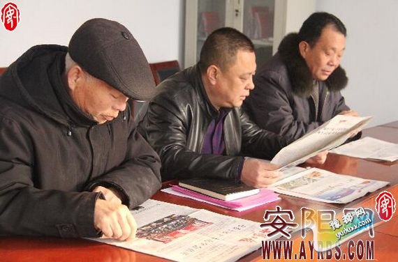 ??? 1月8日,汤阴县韩庄镇部落村村“两委”干部正在认真学习市委十届十七次全会精神。我市召开市委十届十七次全会后,该镇迅速组织镇、村干部,通过研读报纸和分组讨论等形式,认真学习和领会全会精神,并依据“十三五”时期发展目标,结合实际,明确今后的发展目标和工作计划。(路 瑜 张超杰 摄)