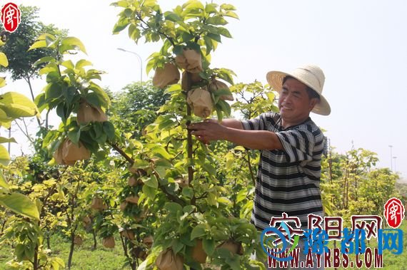 ????8月12日,在汤阴县韩庄镇大光村沙澧特晚秋黄梨园内果农正在管理果树。近年,汤阴县充分发挥全国农业产业化示范基地带动效应,大力发展都市农业、生态绿色农业、观光休闲农业,推进现代农业产业园建设,在调整农业产业结构的同时也增加了农民收入。(付宇?摄)