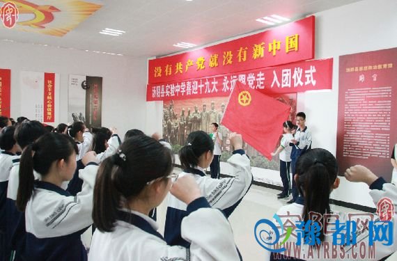 □记者?郭凡?文/图????“我志愿加入中国共产主义青年团……”5月6日,在共青团成立95周年之际,汤阴县在实验中学举行了“喜迎十九大永远跟党走”入团仪式集中示范活动。100名新团员面对团旗庄严宣誓、高唱团歌、佩戴团徽、作出承诺,以实际行动践行新时代青年所肩负的责任和使命。