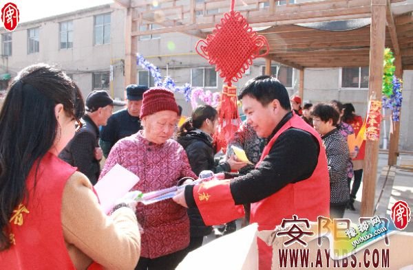 元宵节来临,为弘扬中华民族传统文化,传承敬老爱老美德,3月4日上午,文峰区委组织部组织机关党员志愿者到颐天年敬老院,开展“送元宵、唱红歌、猜灯谜”志愿服务活动,为老人们送去元宵,共唱《没有共产党就没有新中国》等红歌,并组织了猜灯谜活动。老人们兴高采烈地猜灯谜、领奖品,活动现场气氛热烈。(记者姚庆云摄)