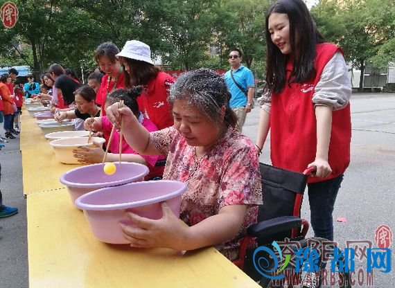 ????5月19日,文峰区残联联合东关街道办事处、绿丝带公益组织在网通小区举办残疾人趣味运动会,33名残疾人运动员在志愿者帮助下完成了夹乒乓球、推轮椅、定向投球等6个项目的比赛。(记者 李雪 摄)